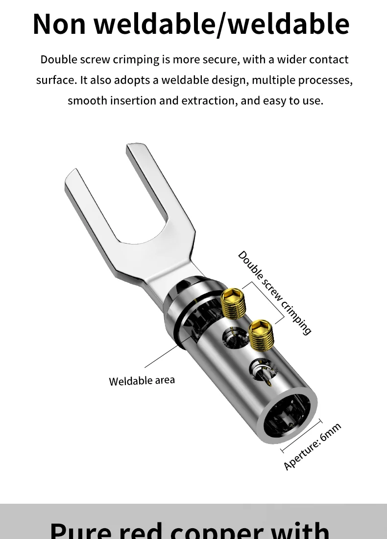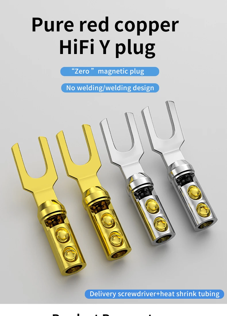 HiFi Pure Red Copper Gold-plated Rhodium Plated HIFi Y Plug U-shaped Connector for Speaker Cable Terminal Accessories