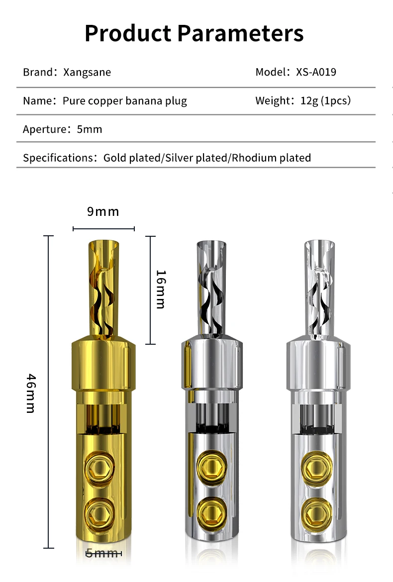 Xangsane Integrated Pure Red Copper Gold-plated Rhodium Plated Silver Plated Hifi Banana Plug Speaker Cable Terminal