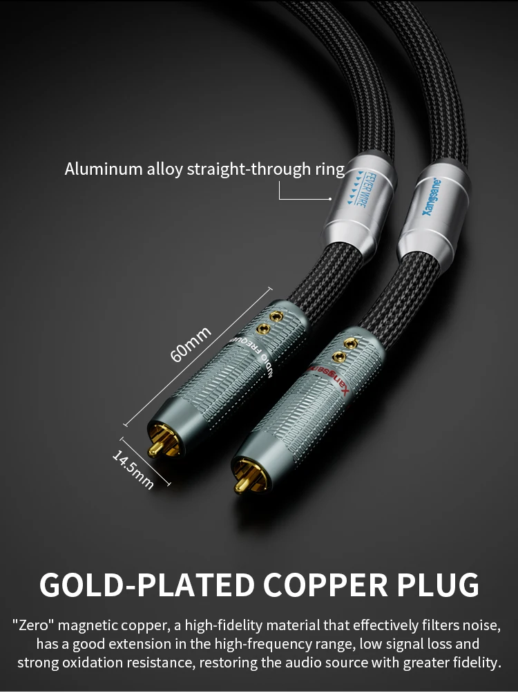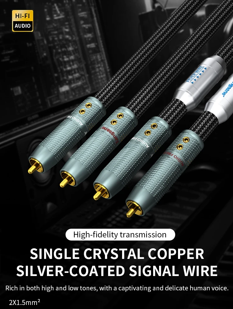 Xangsane SINGLE CRYSTAL COPPER OCC Silver-Plated RCA Audio Cable, HiFi Power Amp to CD Player Signal Wire, Lotus RCA Interconnect for Home Stereo System