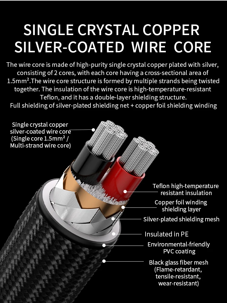The wire core is made of high-purity single crystal copper plated with silver,