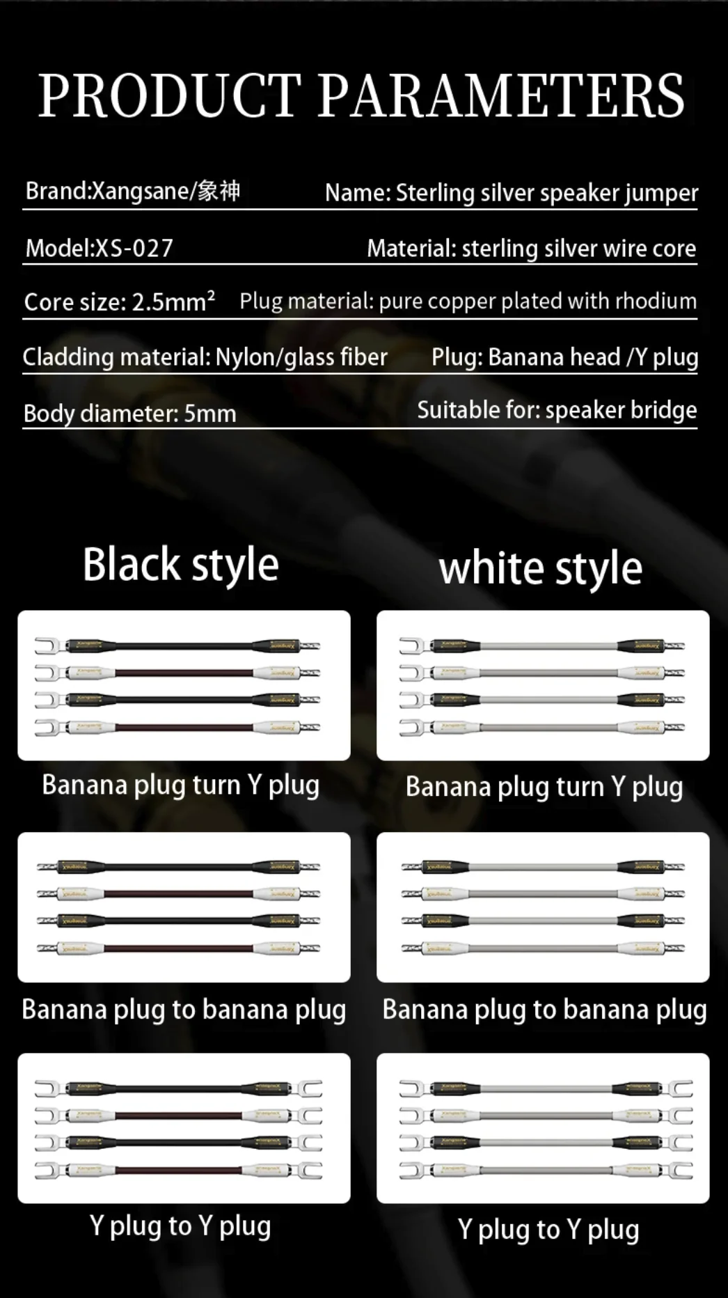 Pure Sterling Silver Jumper Speaker Bridge Cable High and Low Split-line Banana Y Plug